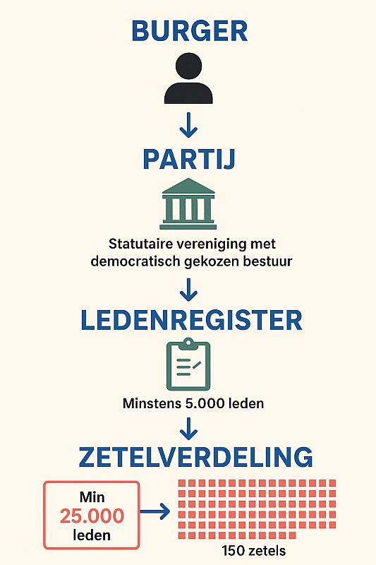 Een partij met minder dan 25.000 leden mag dus wel bestaan, maar krijgt geen Kamerzetel.